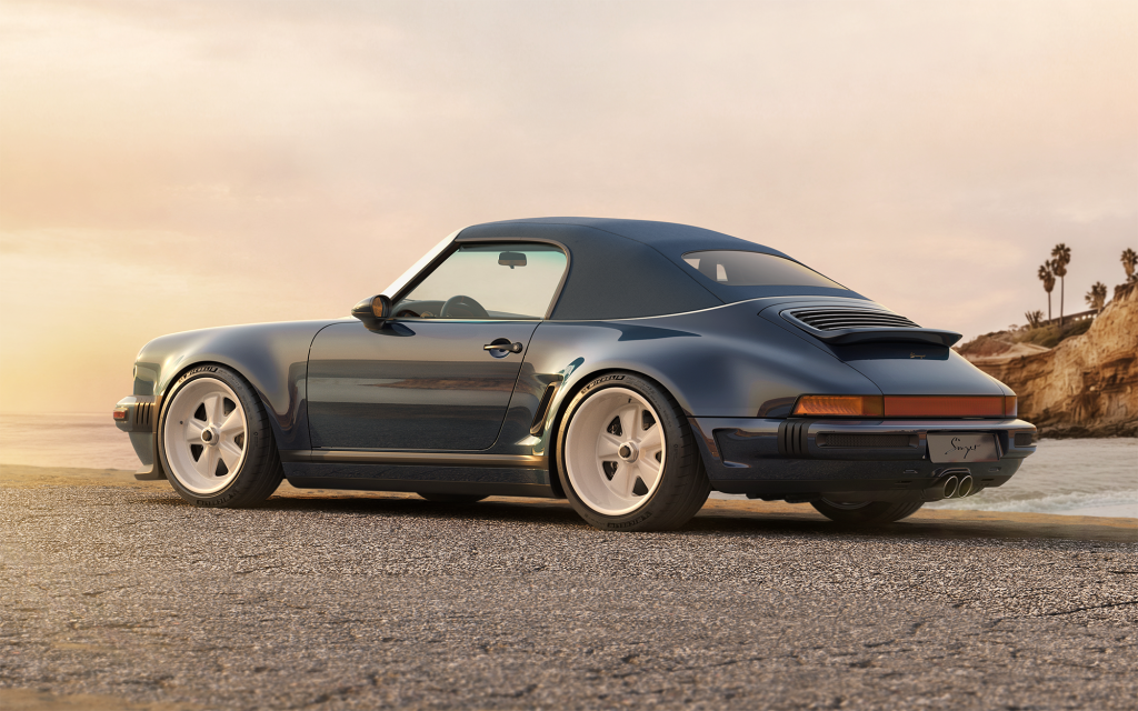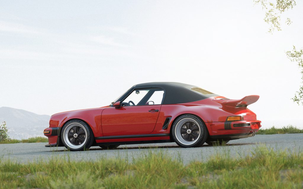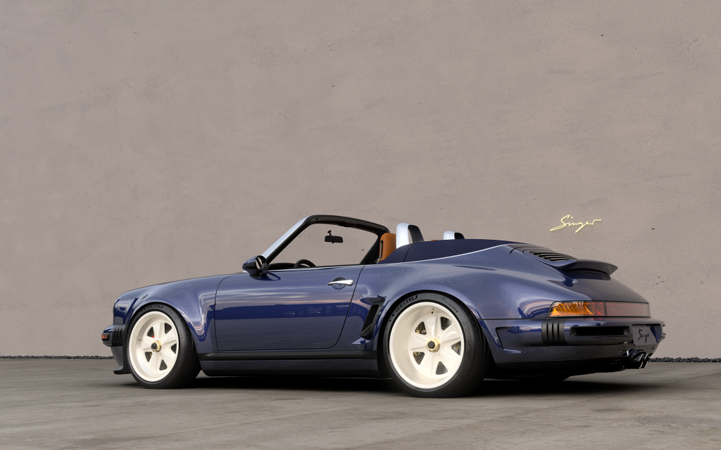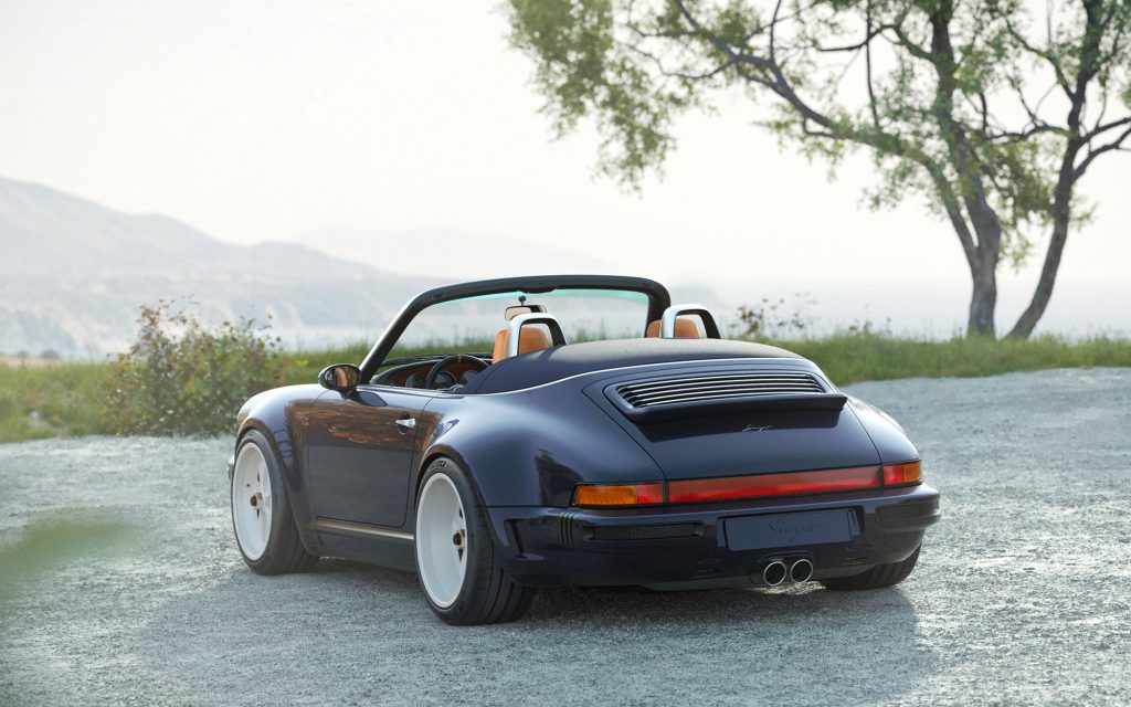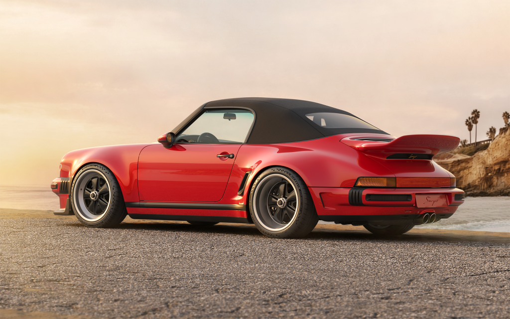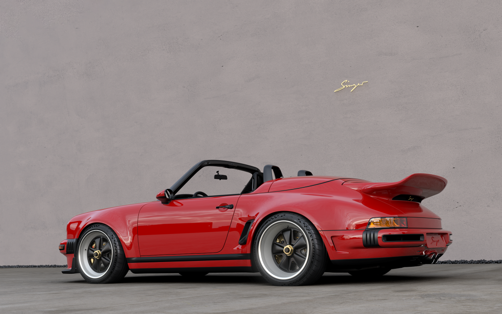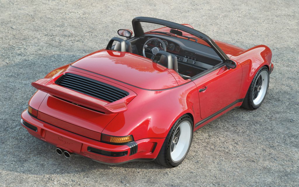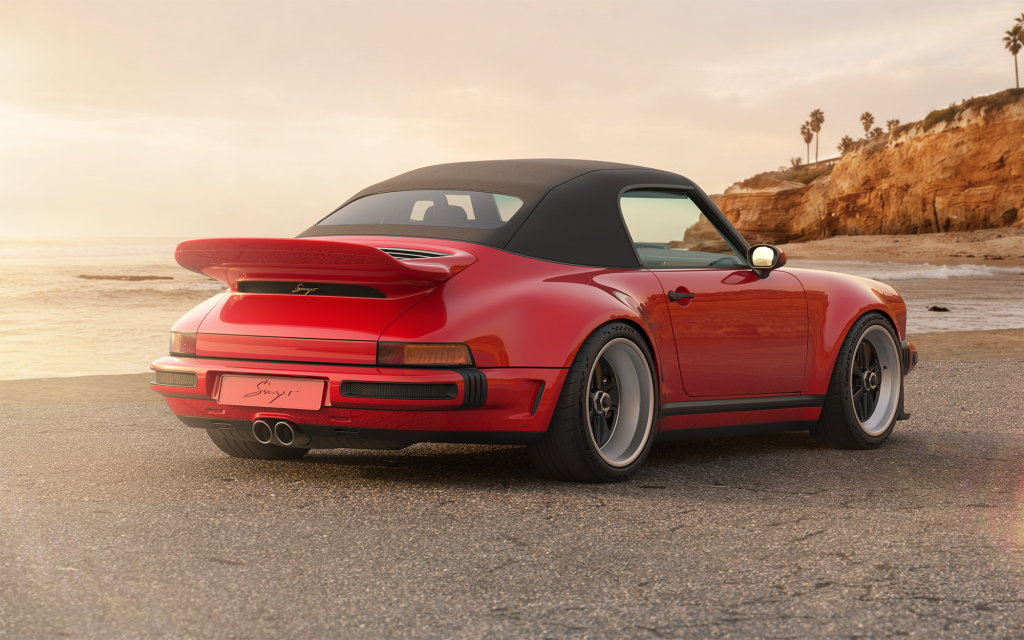A newly developed lightweight “Z pattern” folding roof mechanism replaces the period system. Singer states that the revised design reduces mass and maintains a clean silhouette whether raised or lowered. Buyers may specify either a fixed rear wing or a speed-activated unit, echoing period configurations that could be ordered with or without the whale tail spoiler.