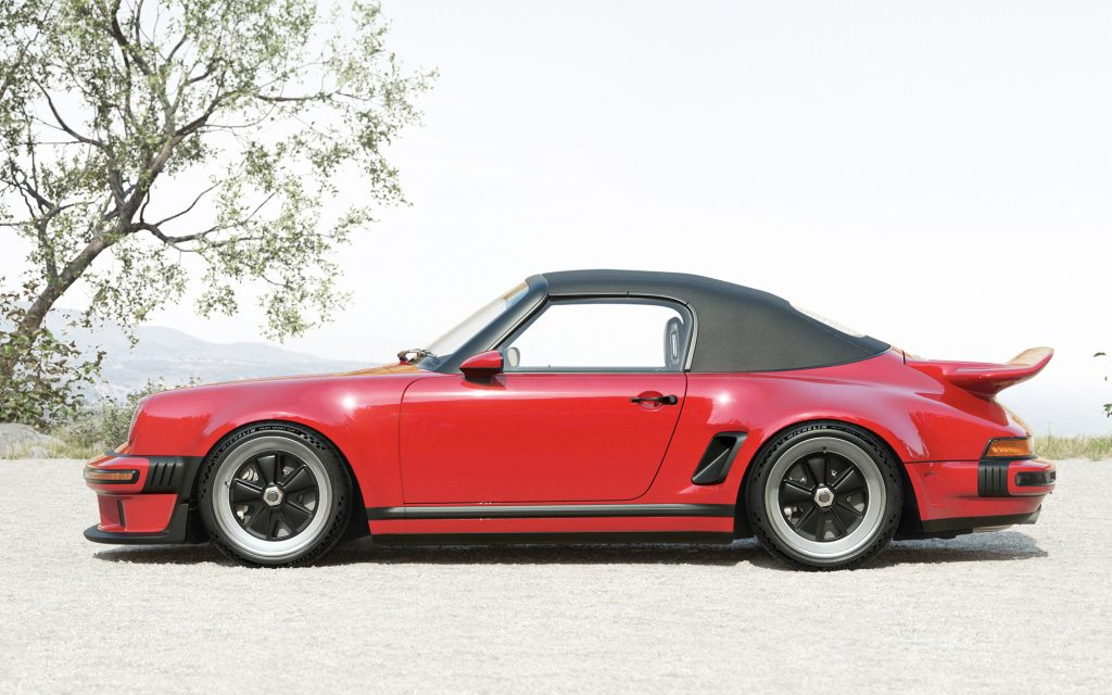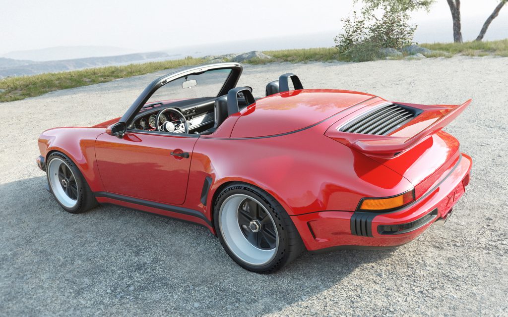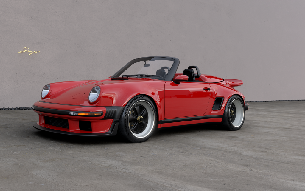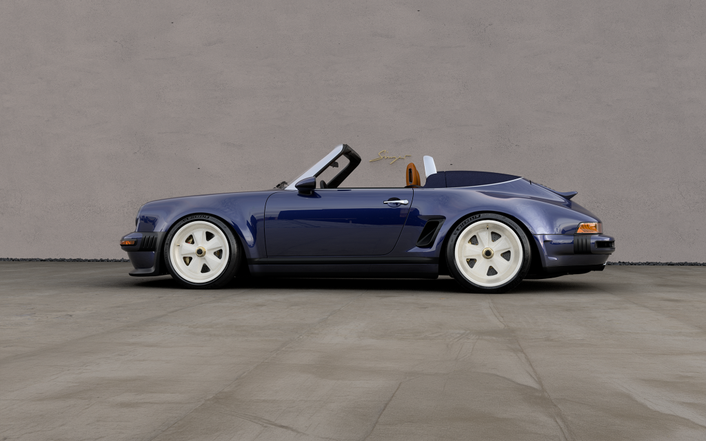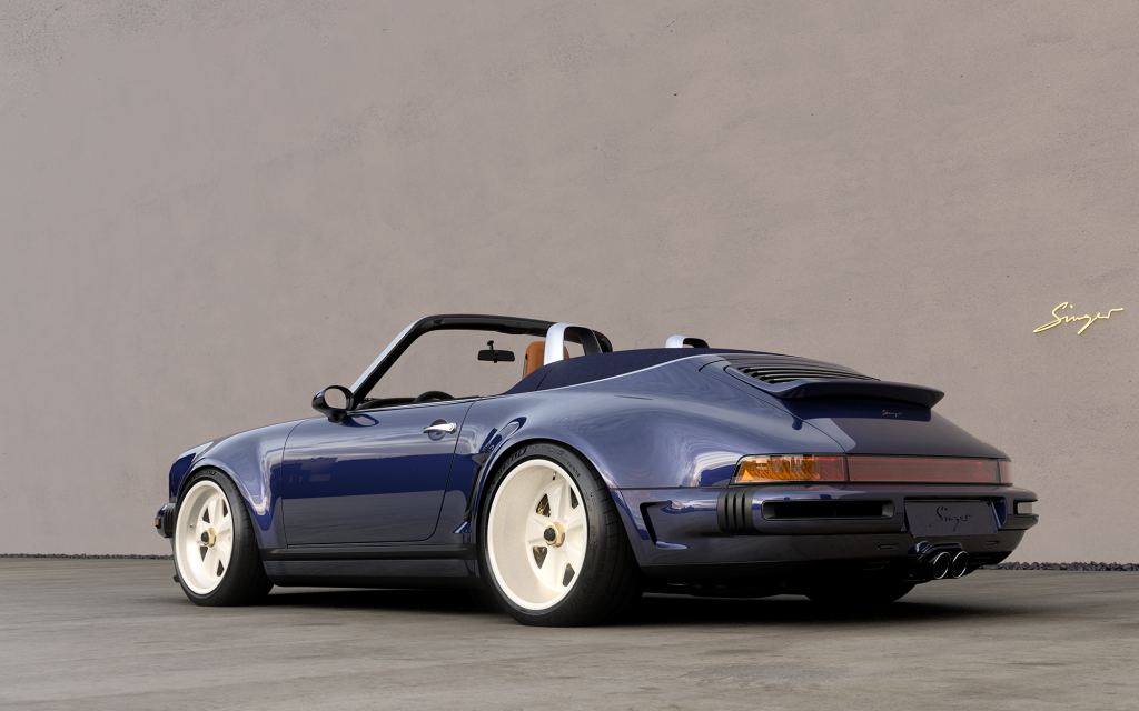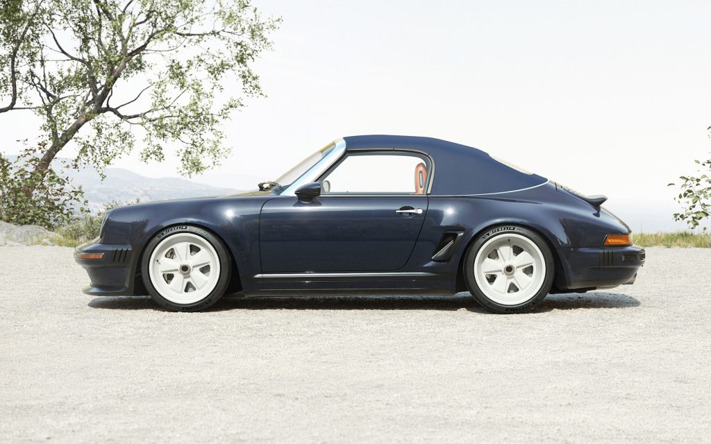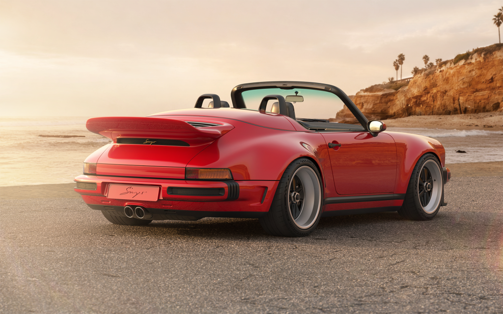 A newly developed lightweight “Z pattern” folding roof mechanism replaces the period system. Singer states that the revised design reduces mass and maintains a clean silhouette whether raised or lowered. Buyers may specify either a fixed rear wing or a speed-activated unit, echoing period configurations that could be ordered with or without the whale tail spoiler.