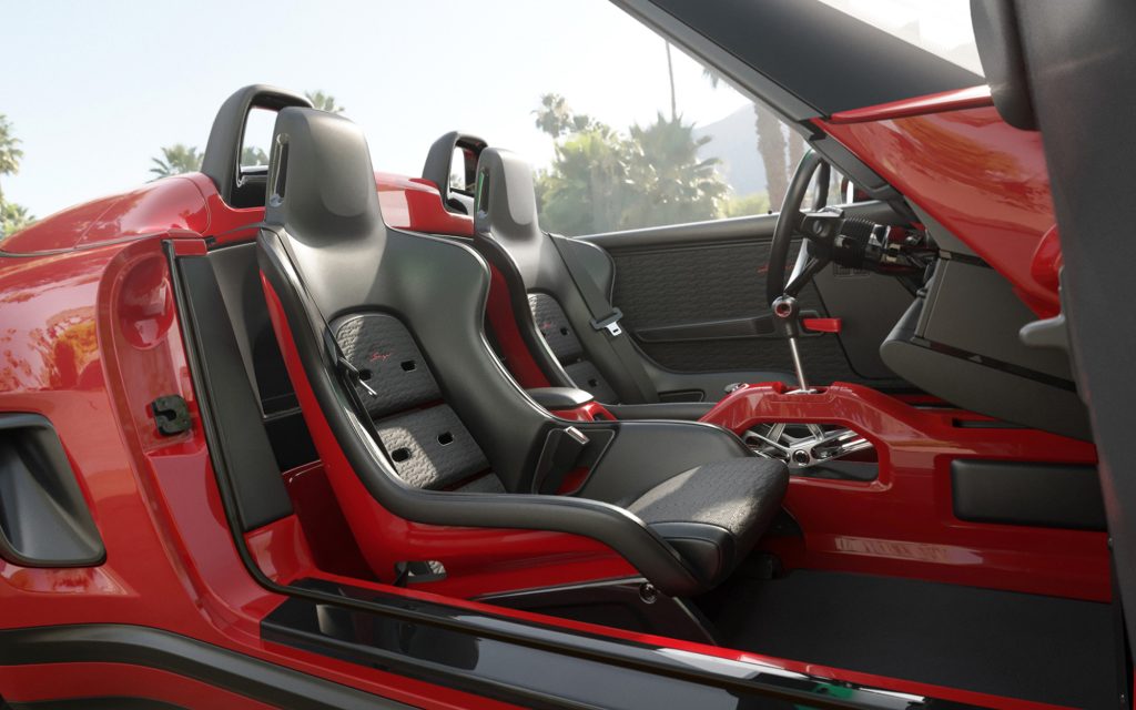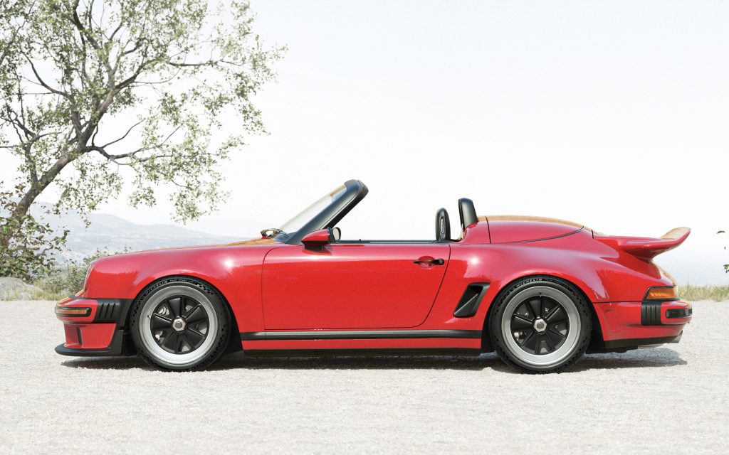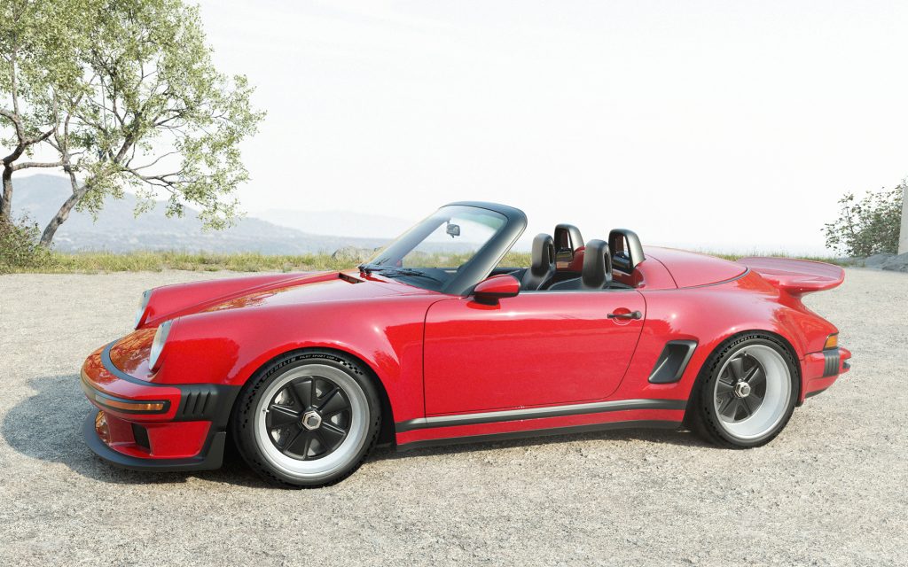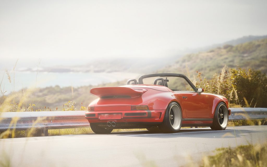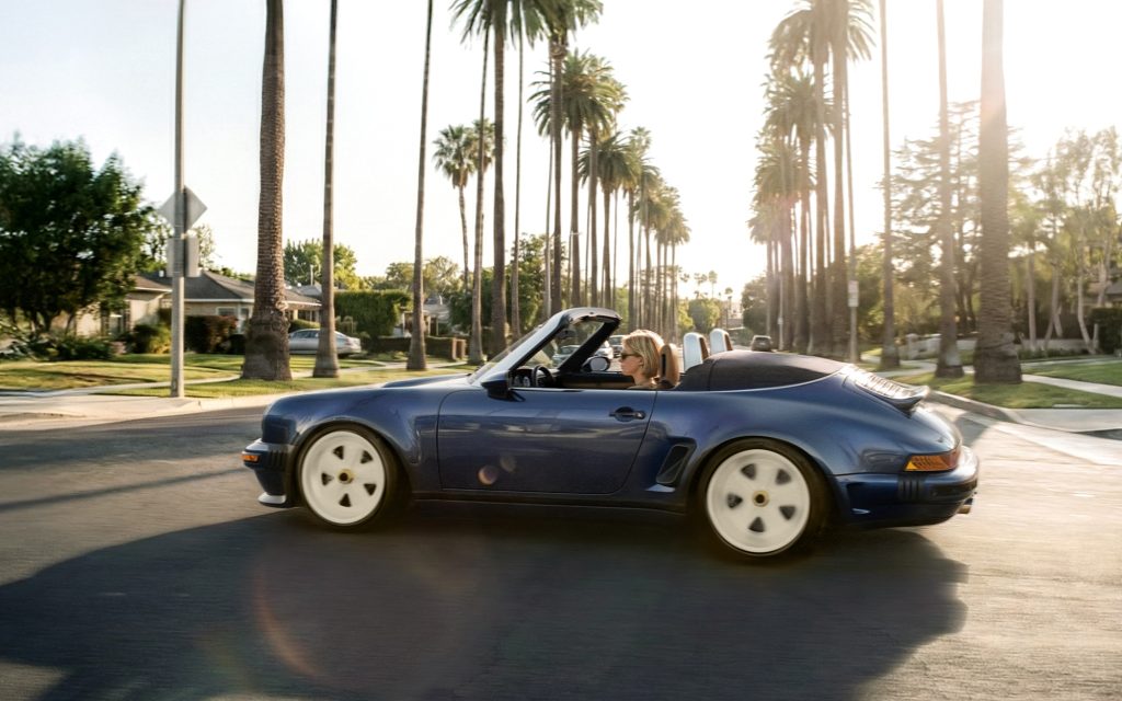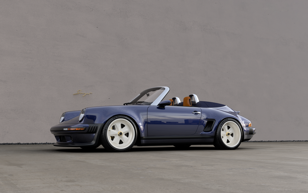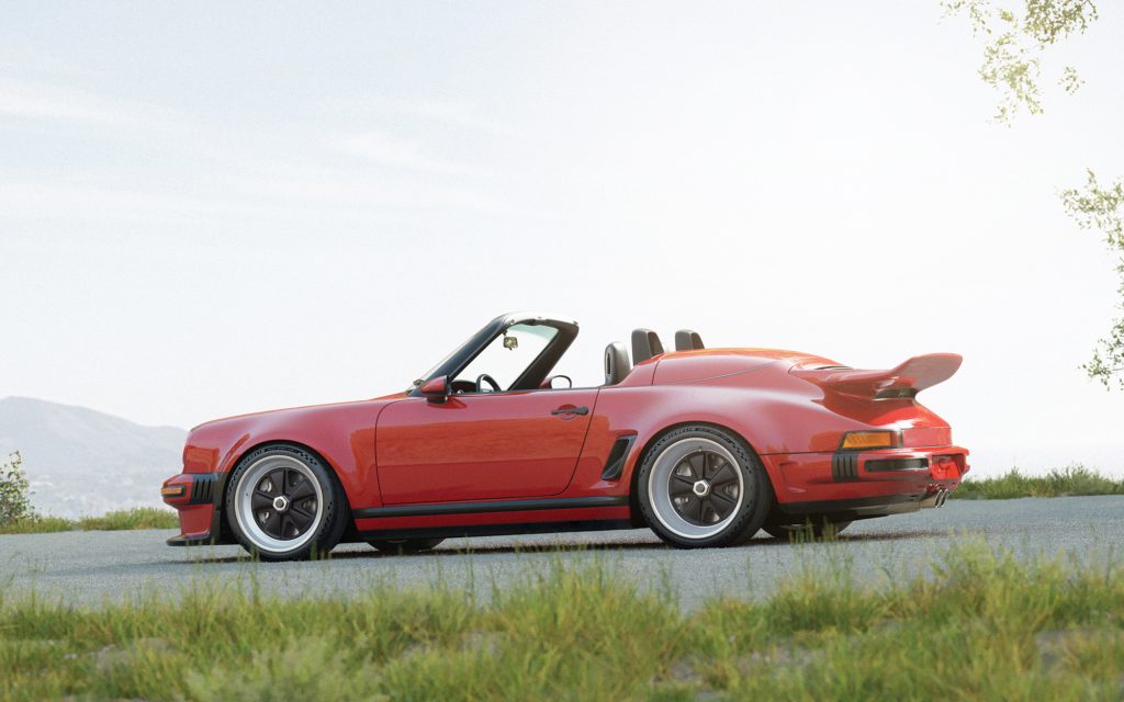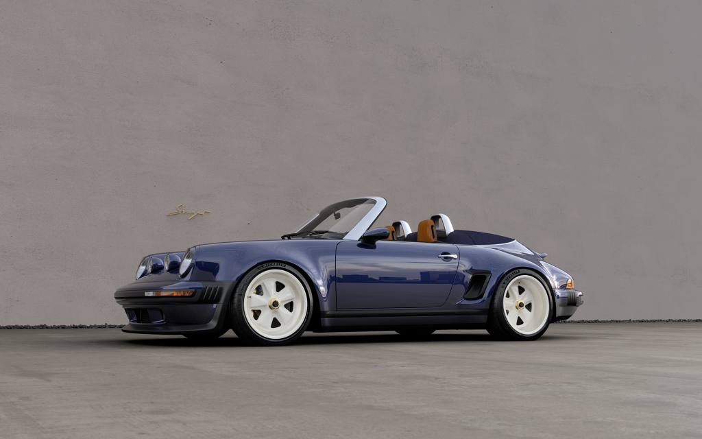 A newly developed lightweight “Z pattern” folding roof mechanism replaces the period system. Singer states that the revised design reduces mass and maintains a clean silhouette whether raised or lowered. Buyers may specify either a fixed rear wing or a speed-activated unit, echoing period configurations that could be ordered with or without the whale tail spoiler.