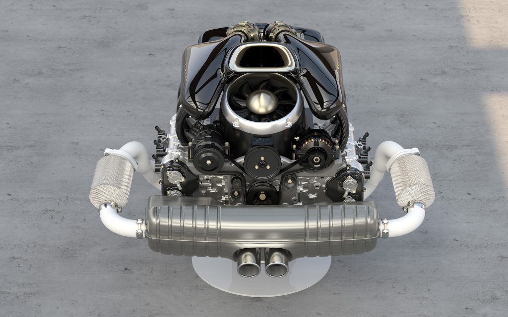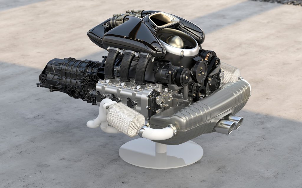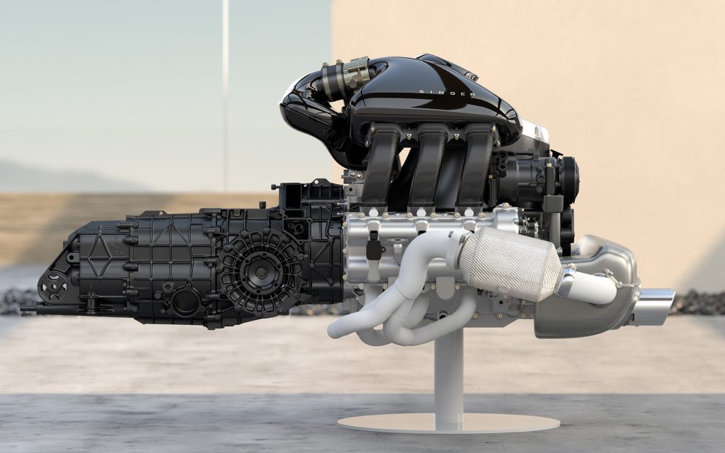 The engine produces 420 horsepower and revs beyond 8,000 rpm. It features four valves per cylinder, variable valve timing, water-cooled cylinder heads paired with air-cooled cylinders and an electrically powered cooling fan. Singer notes that this is the first naturally aspirated engine in its portfolio to incorporate variable valve timing and this hybrid cooling approach, broadening torque delivery and improving drivability while retaining a high-revving character. Power is delivered to the rear wheels through a six-speed manual transmission.