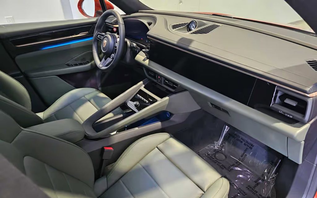 On the outside is Porsche’s take on Papaya Orange, a Paint to Sample hue that’s a darker metallic red than most Papayas that tend to follow the model made by McLaren. Porsche’s Papaya is a handsome orange, one that works well with Neodyme muted gold accents such as door handles and wheels. This is all predictable if rare spec so far. However, it’s what’s inside that makes this car really stand out.