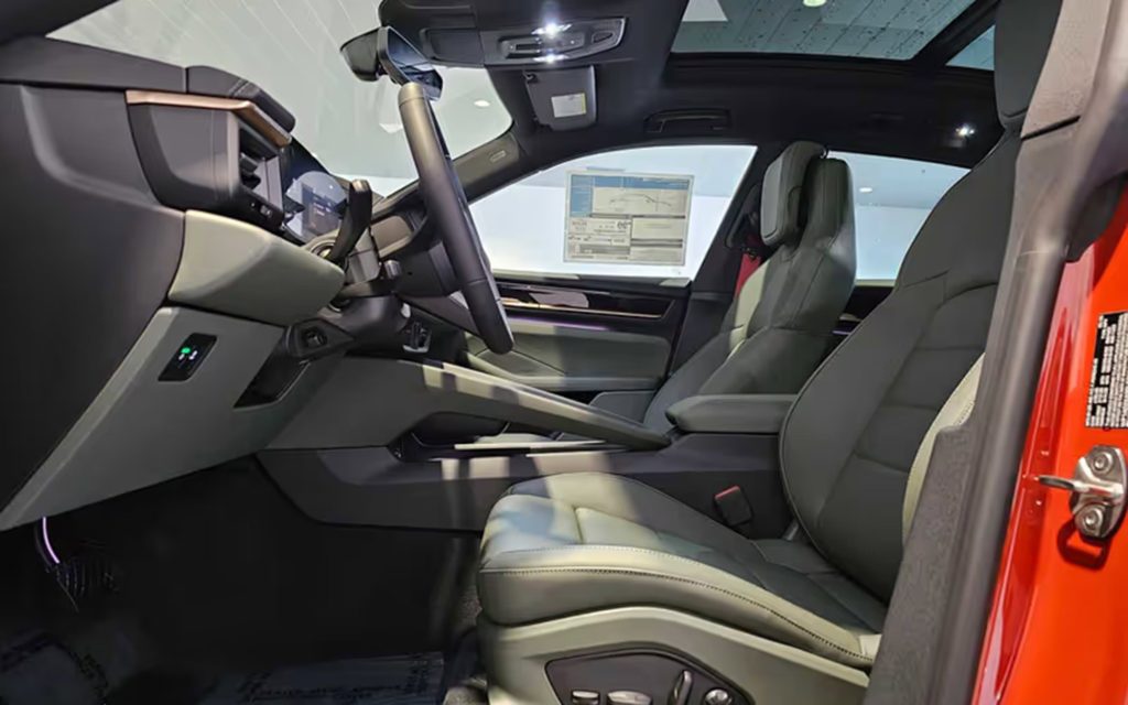 The modern Porsche Macan Electric offers as standard a Night Green leather option. While somewhat muted and subtle, there’s no doubt that it’s green. Install it in a neutral colored car such as black, grey, silver or white and it definitely seems at home in any Porsche. Install it in a somewhat clashing orange car though and the car takes on a solid 70s vibe when car companies were downright avantgard with their pairings.