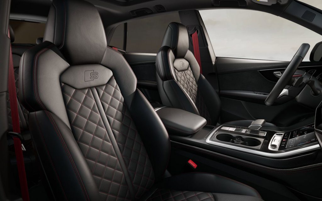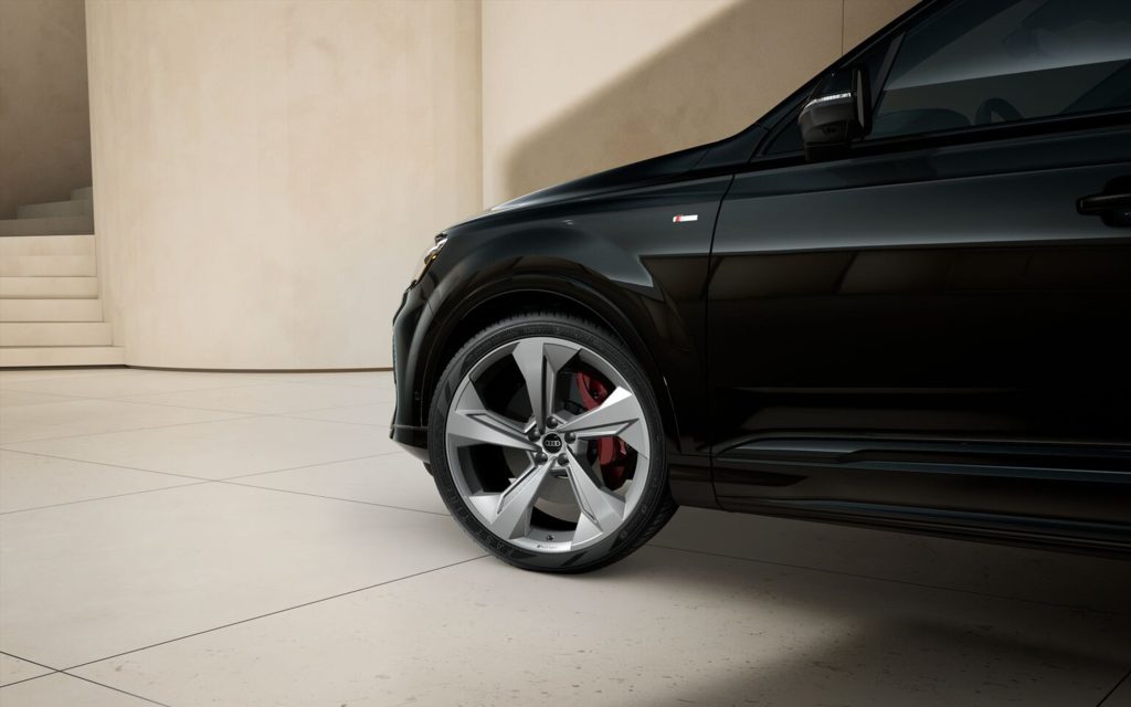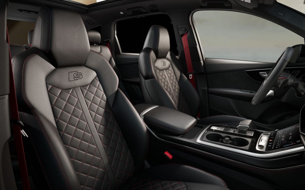 The Q7 Prestige Sport plus package follows a similar recipe for Audi’s seven-seat flagship. Priced at $4,800 above the standard Prestige trim, it adds the S line exterior, sport adaptive air suspension, and ventilated, massaging sport seatsalso found in the SQ7 and SQ8. The interior features black optic trim and carbon twill matte inlays, while the exterior rides on 21-inch 5-double-spoke wheels in a bicolor finish—a design that traces its roots to the C7-generation RS 6 Avant. Buyers can also upgrade to 22-inch 5-arm-edge wheels in a platinum finish ($1,500), a design previously used on the SQ7.