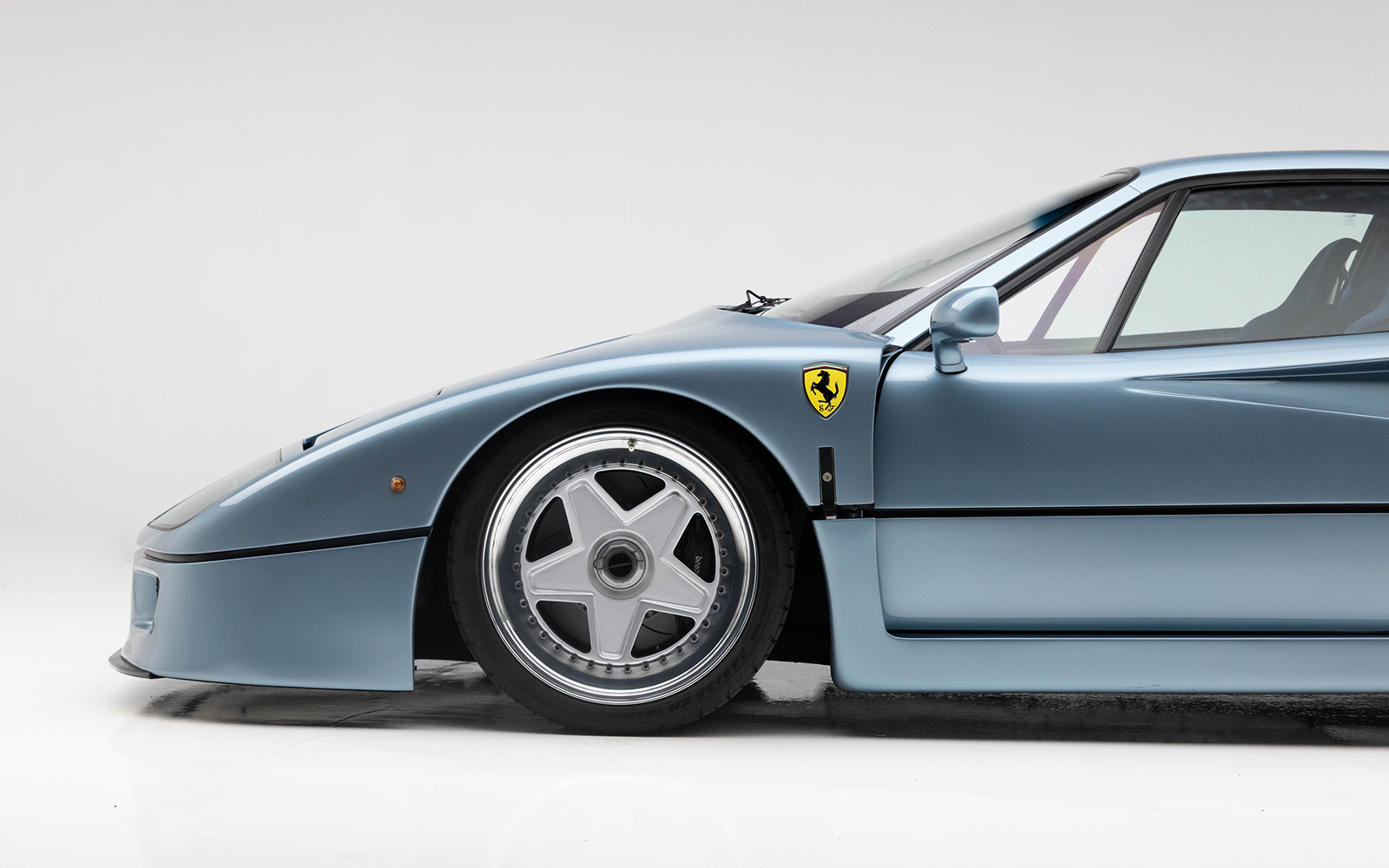 Given all Ferrari F40s produced by the factory were red-over-red, this means any F40 not appearing in red has been repainted. Of course, playing in the rare air of Ferrari F40s, one can assume a color change done after the fact will likely be done correctly... and most tastefully in this case given its Azzurro Hyperion, a shade of silvery blue, over blue interior.