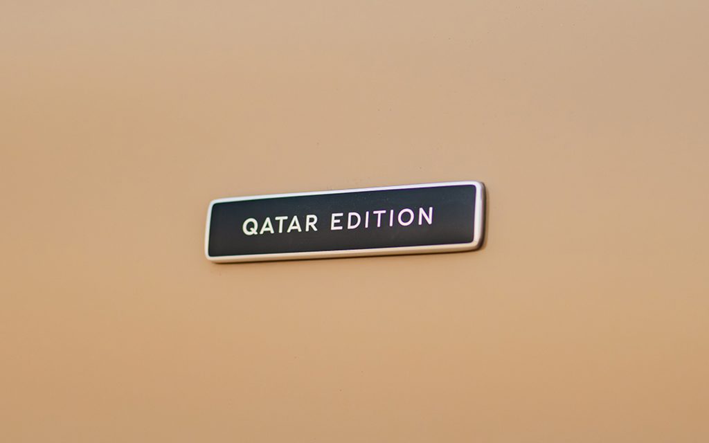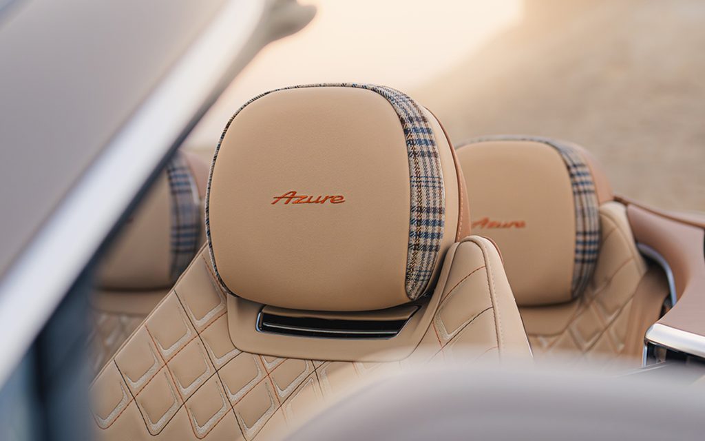 Inside, the Qatar Edition departs from Bentley’s traditional leather-only approach with the introduction of plaid cloth upholstery, paired with custom embroidery. The pattern is tapered and graduated to visually reference the sky as it lightens toward the horizon, creating a deliberate contrast between the darker lower cabin and brighter upper surfaces. The execution blends textile elements with Bentley’s established craftsmanship standards, integrating the cloth into the broader Azure interior specification rather than treating it as an accent alone.