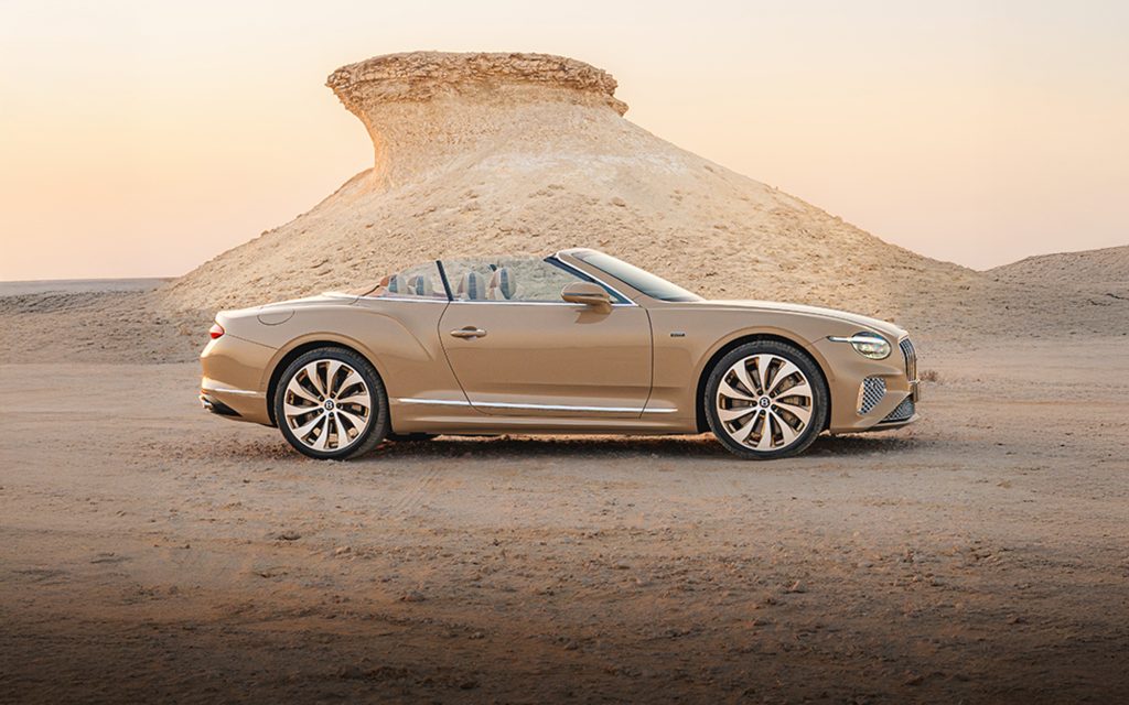 Bentley’s description of the car highlights the contrast between daytime heat and evening conditions in the region. With temperatures easing after sunset, the GTC’s convertible configuration becomes central to the experience, allowing occupants to travel with the roof lowered as ambient air and fading light shape the drive. The bespoke specification reinforces that transition, aligning materials and colours with the time of day the car is intended to be enjoyed.