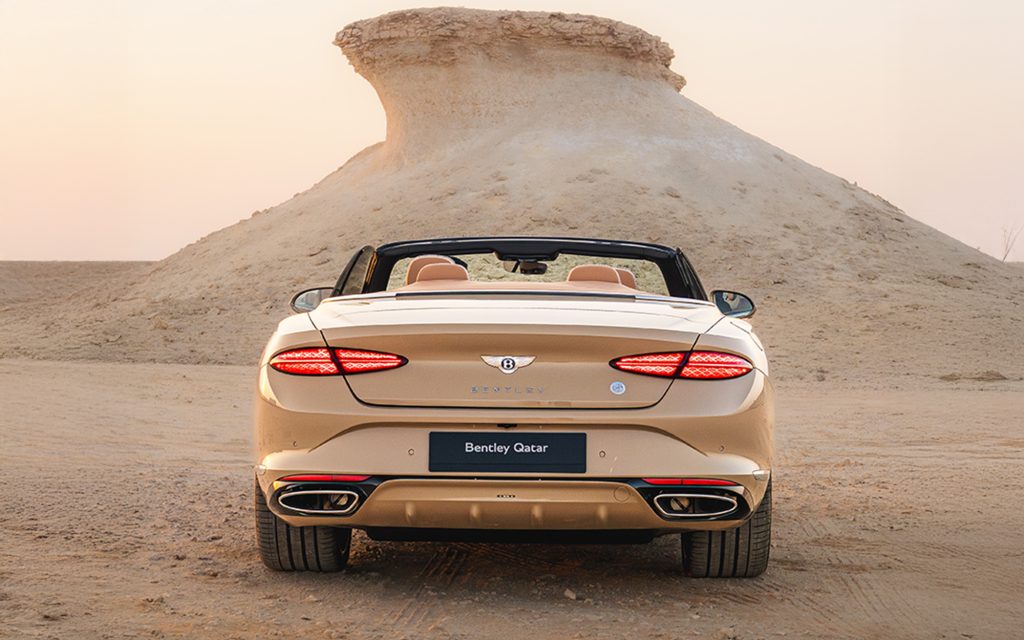The base vehicle is the Bentley Continental GTC Azure, already positioned as the most comfort-focused and indulgent version of Bentley’s open-top grand tourer. Features such as wellness-oriented seating, extensive sound insulation, and the multi-layer fabric roof remain unchanged, but the Qatar-specific detailing reframes the car around its intended environment.