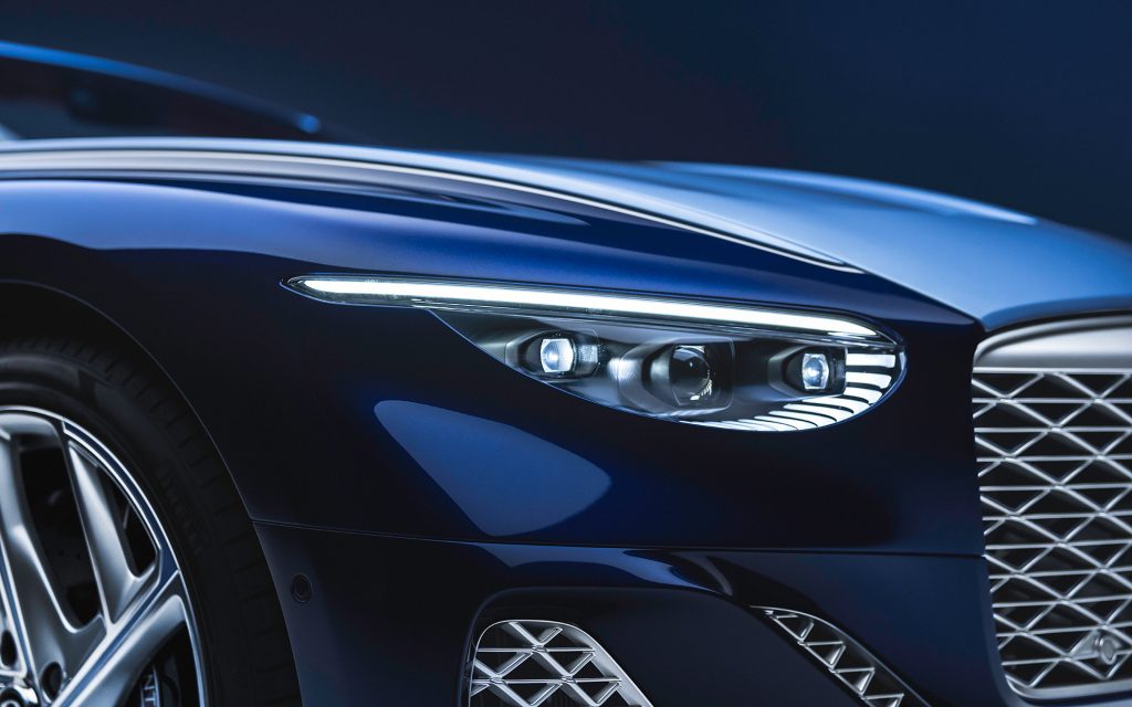The headline theme of Batur Convertible #4 is co-creation—specifically four first-ever applications that quietly push Mulliner’s craft forward. The exterior debuts the brand’s first customer-defined tri-tone scheme, finished with a precise 6 mm gloss-silver fine line that visually stretches the Batur’s “endless bonnet.” Breslow Blue crowns the car, while a darker Midnight Breslow Blue anchors the lower body, accented with matching pinstripes, wheel details, and mirror caps. Even the fabric roof is color-matched, a Mulliner first, so that when stowed it reveals an Airbridge painted in the same bespoke hue.
