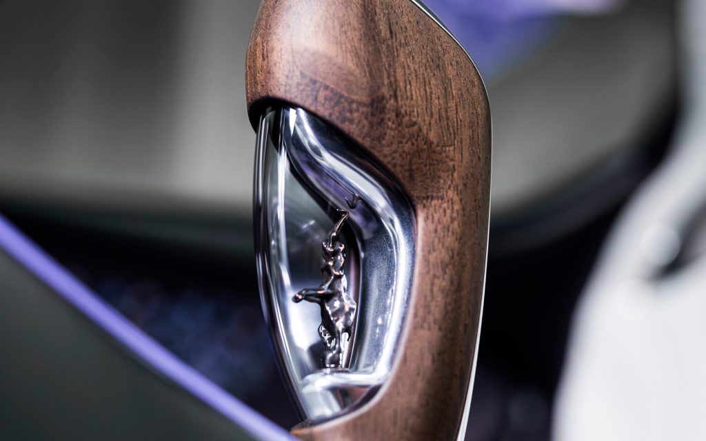 At the center of the interior sits one of Bugatti’s signature details: the Rembrandt Bugatti “Dancing Elephant,” encased in tinted glass that harmonizes with the surrounding color scheme. It serves as a subtle nod to the brand’s artistic heritage, reinforcing the connection between mechanical engineering and fine art.