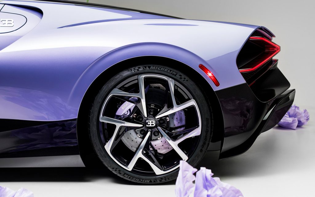 From there, Bugatti’s design and materials teams—working between Molsheim and its Berlin design studio—translated that vision into a cohesive automotive identity. Led by Color & Material Finish specialists, the development process explored floral themes, haute couture influences and natural landscapes, particularly the lavender fields of Provence and curated Parisian gardens.