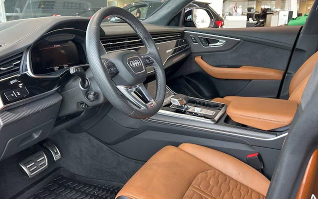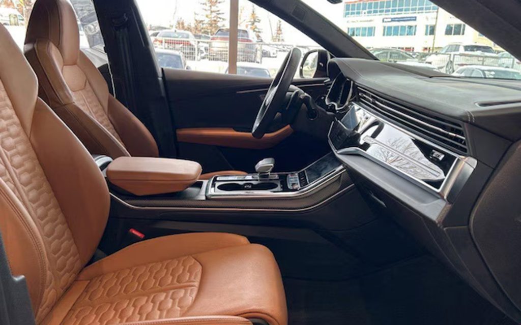 Tone over tone is always an attractive combination, and this Canadian market RS Q8 resembles that remark. Built in Ipanema Brown, once a favorite of Audi AG’s European show car fleet designers, the color is incredibly unique. Paired with RS-specific Cognac leather with its own orange hue, the car exudes a unique overall feel.