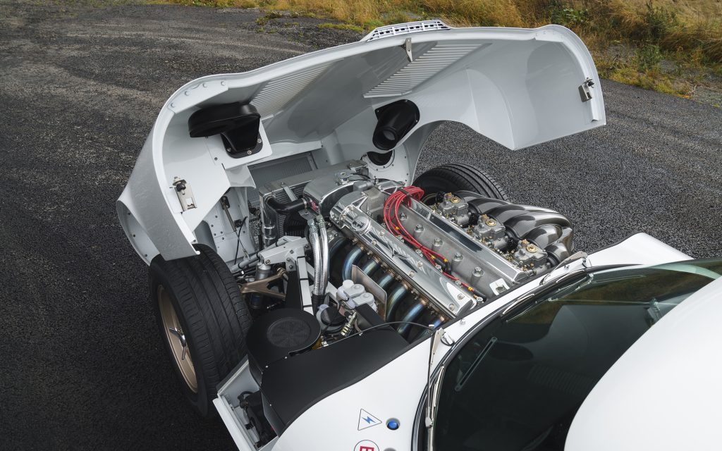 At just 975 kg with fluids, the Lightweight GTR is over 30 percent lighter than a standard E-Type roadster. Achieving that required a holistic approach: aluminum panels, magnesium transmission casings, titanium hardware, Inconel exhaust components, and even carbon-ceramic brakes all contribute to dramatic weight reduction.