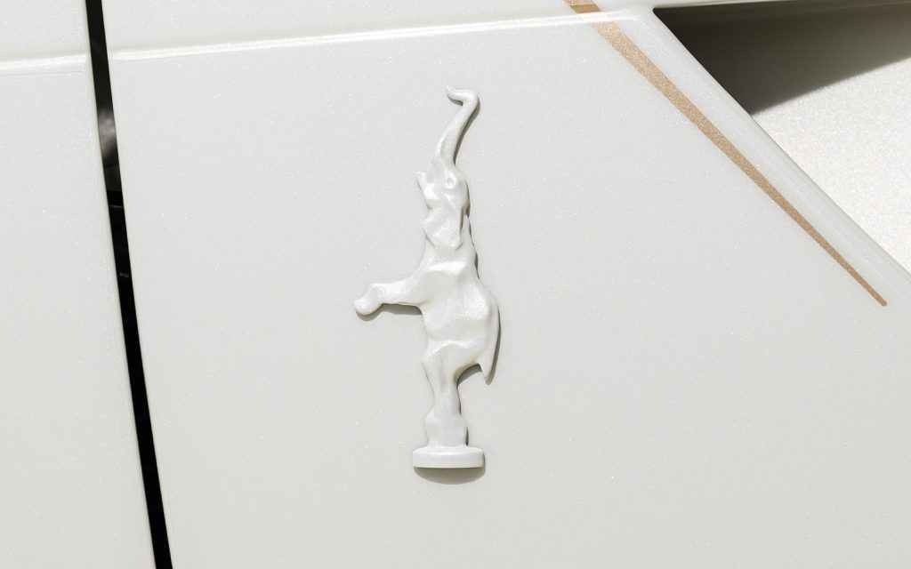 Bugatti’s historical touchstone—the Rembrandt Bugatti Dancing Elephant—appears within the cockpit and on exterior body panels behind the front wheels. It is a familiar motif for the marque, but here it acts as a bridge between contemporary individualization and early 20th-century design heritage.