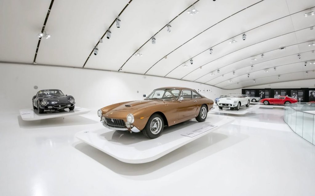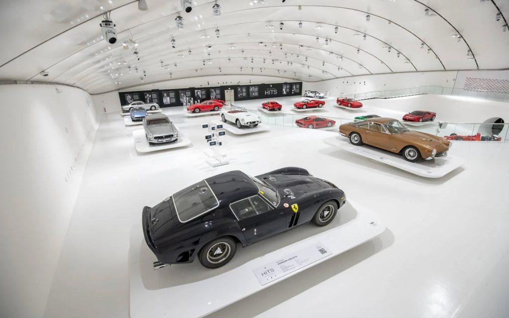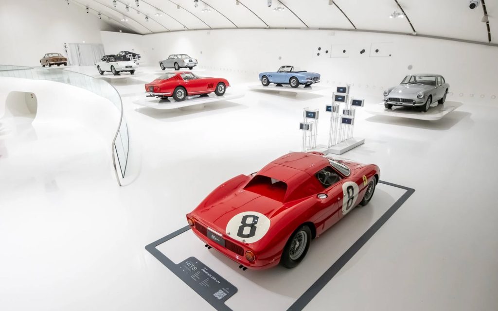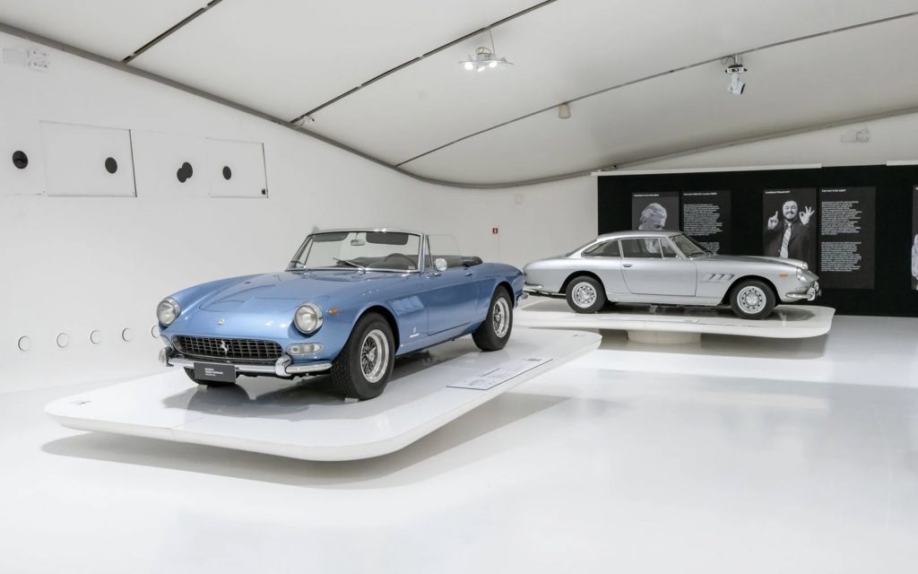 Historic Ferraris associated with musicians are also included. The exhibition features the Ferrari 250 GTO owned by Nick Mason, one of the most significant Ferrari competition cars of the 1960s, as well as a Ferrari 250 GT Lussopreviously owned by conductor Herbert von Karajan.