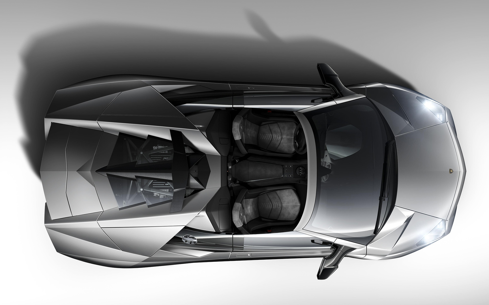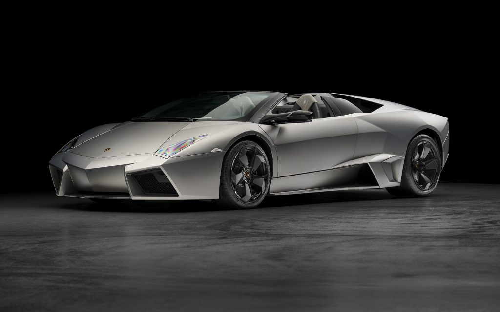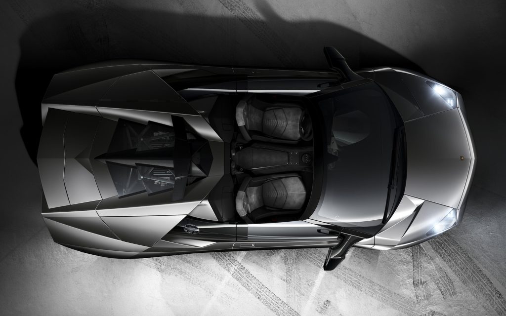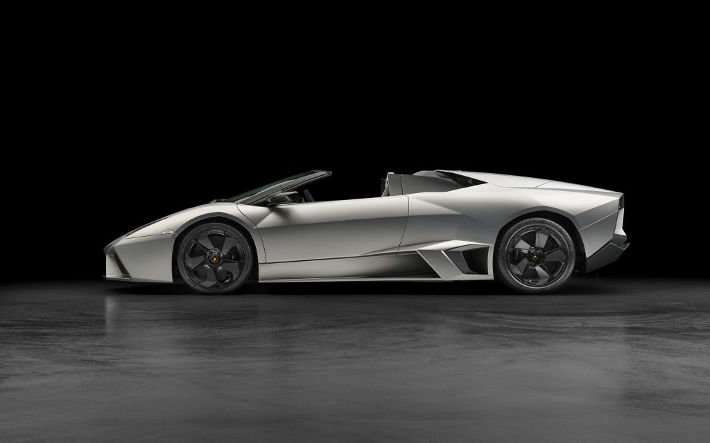 The Reventón Roadster, unveiled in 2009, represents the very first Few Off roadster Lamborghini ever produced, embodying radical exclusivity and a futuristic design inspired by fighter jets. Only 15 units of the Reventón Roadster were produced, in addition to 20 coupés. The car combined an angular body with a naturally aspirated 6.5-liter V12 delivering 650 CV. It accelerated from 0 to 100 km/h in 3.4 seconds and reached a top speed of over 340 km/h. The model introduced the extensive use of carbon fiber reinforced polymer body panels and a hybrid chassis combining steel and CFRP reinforcements. It was also the first Lamborghini equipped with a fully digital instrument cluster featuring three LCD displays, marking a significant technological step forward for the brand.