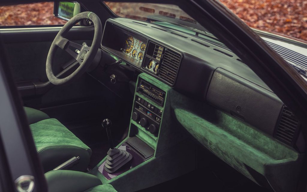 Maturo expands on that original green interior specification with a fully bespoke green leather and Alcantara interior, elevating what might once have been an eccentric factory option into something more deliberate. This isn’t about replicating a 1990s Lancia cabin stitch-for-stitch; but rather using colour, texture, and material quality to deliver a cabin that feels contemporary while remaining consistent with the Integrale’s original character.