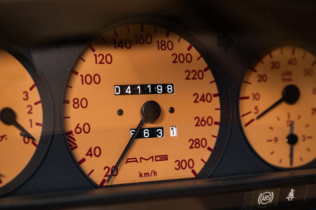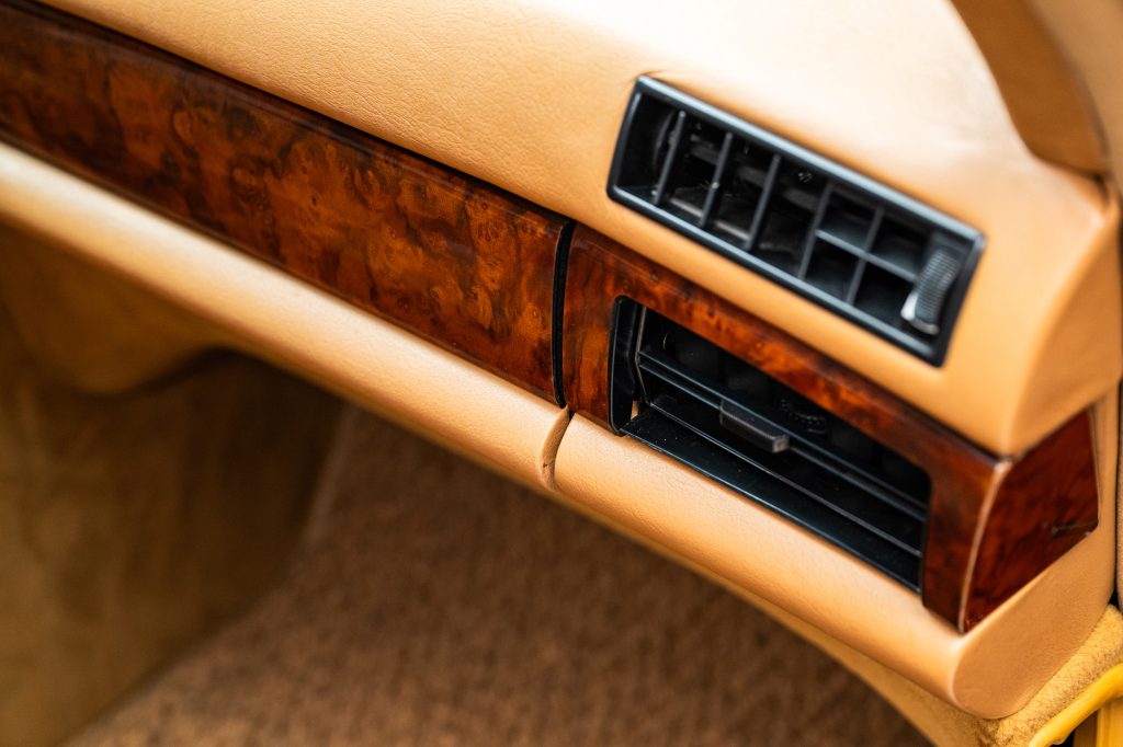 The interior also saw subtle changes under Fingold’s care. The original rear curtains were removed and period accessories such as a Clifford alarm system were added, but the core Gemballa-trimmed palomino scheme remained intact. Even the AMG metric gauge cluster—temporarily removed during federalization—was modified and reinstalled, a small but telling detail that underscores how this car blended European flair with North American usability.