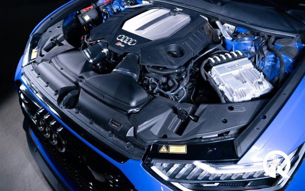 The twin-turbo V8 has been reworked with Akrapovič exhaust and downpipes, an Eventuri carbon intake, and VF Engineering calibration, elevating output beyond stock figures. Supporting hardware, including a CETE lowering module, sharpens the stance while maintaining daily drivability—very much in line with the RS 6’s super wagon you can actually use mission.