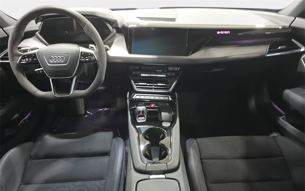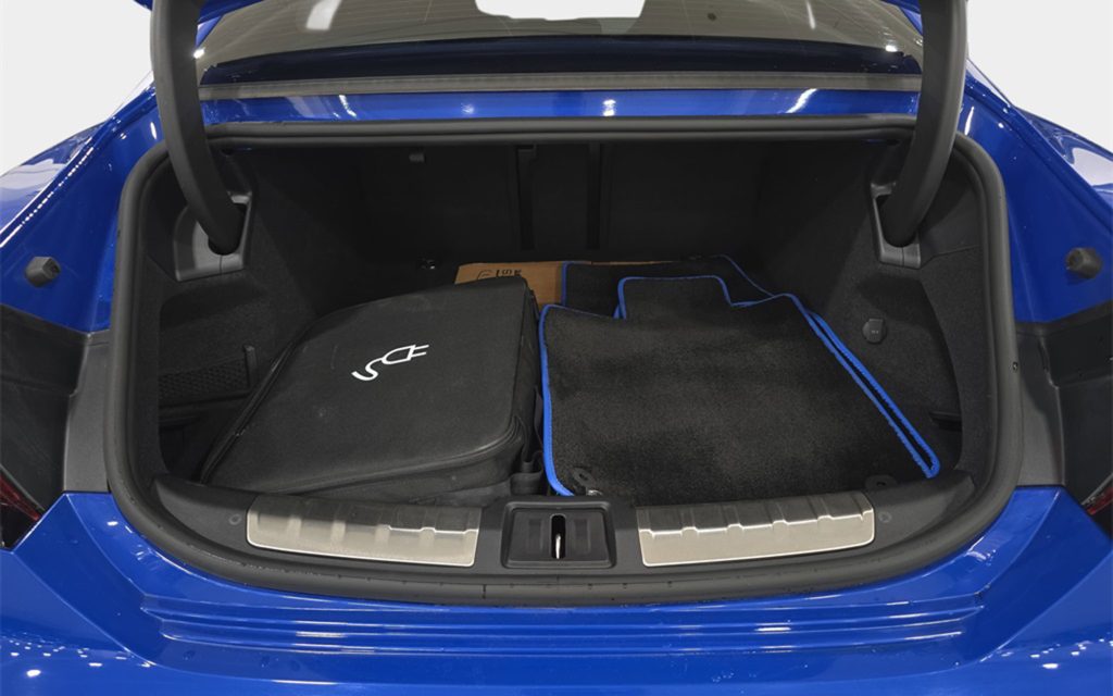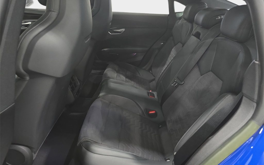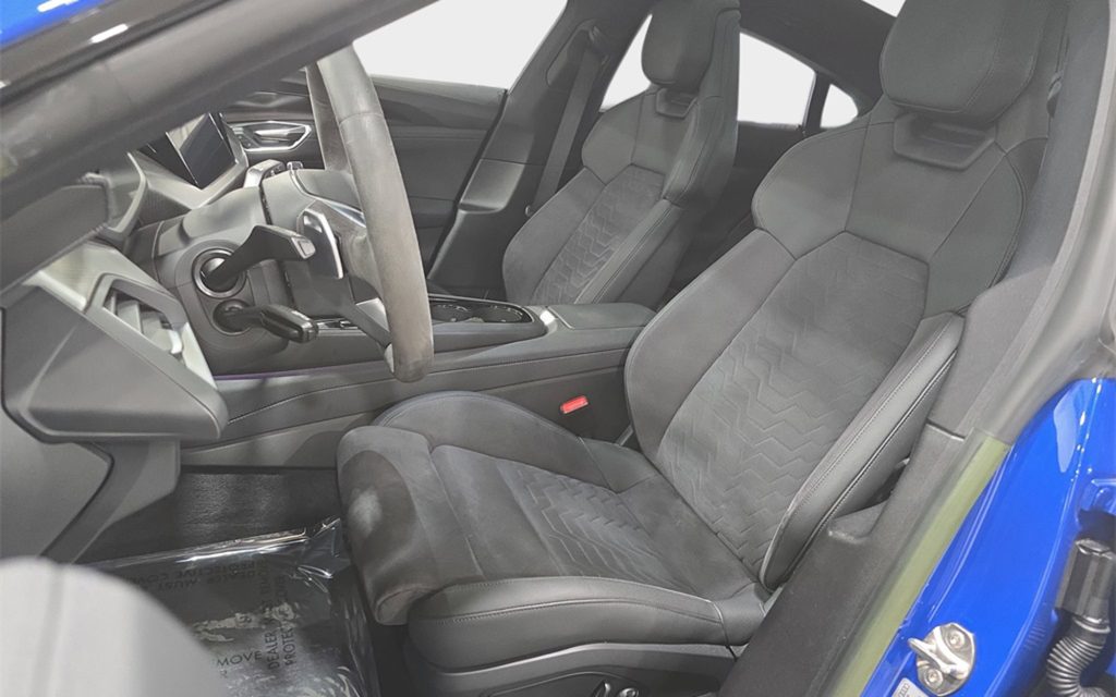 Given it’s an e-tron GT, the seats are partial Dinamica are sporting but standard spec. In the trunk though we see special floor mats with matching Nogaro Blue piping around the edges – a nice extra something the original owner would have had to spec.