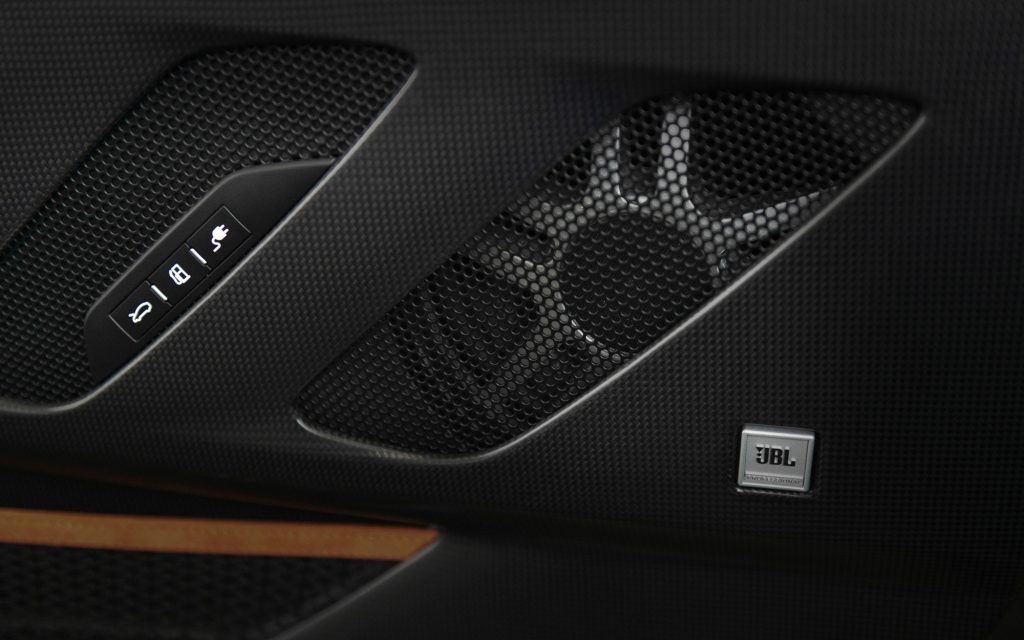 The interior is configured with Extra Range Nero Alcantara and Cuoio stitching, with carbon fiber used for the center console and various trim elements. Additional equipment includes a premium hi-fi system, smartphone interface, front and rear parking cameras, parking sensors, and a front-axle lift.
