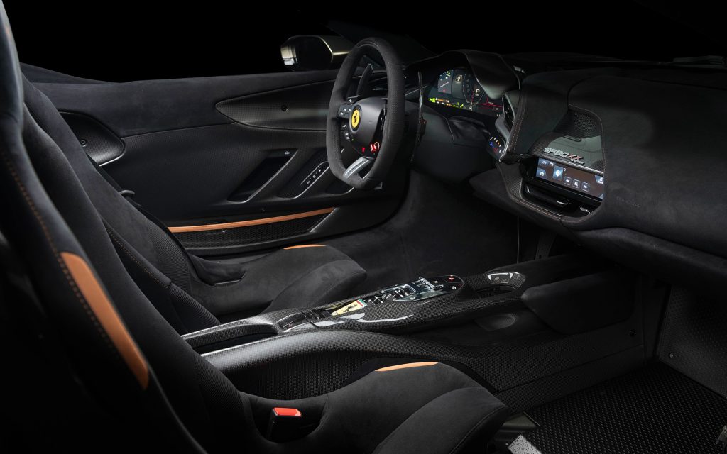 The SF90 XX Spider uses the same hybrid foundation as the standard SF90—combining a twin-turbocharged 4.0-liter V8 with three electric motors—but output increases to 1,016 horsepower. Ferrari reports 0–100 km/h in 2.3 seconds and a top speed of 320 km/h. Updates for the XX include recalibrated hybrid management, an “Extra Boost” power feature in Qualifying mode, and aerodynamic revisions producing up to 530 kg of downforce at 250 km/h. Mechanical updates derived from later Ferrari models include transmission modifications related to the Daytona SP3 and chassis controls adapted from the 296 GTB.
