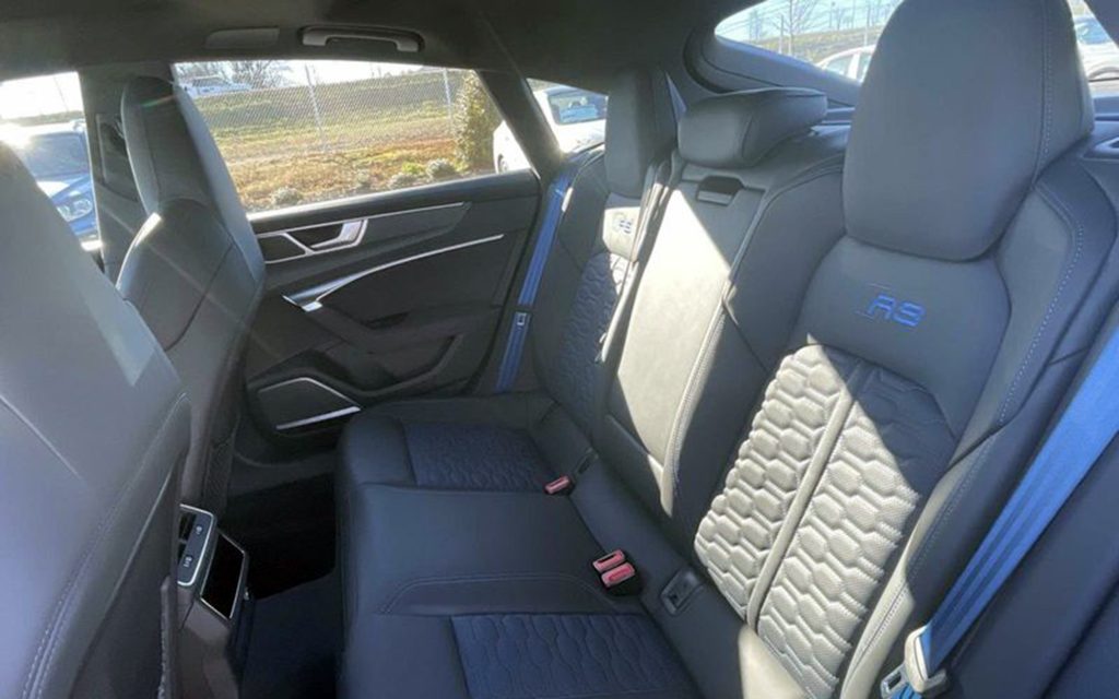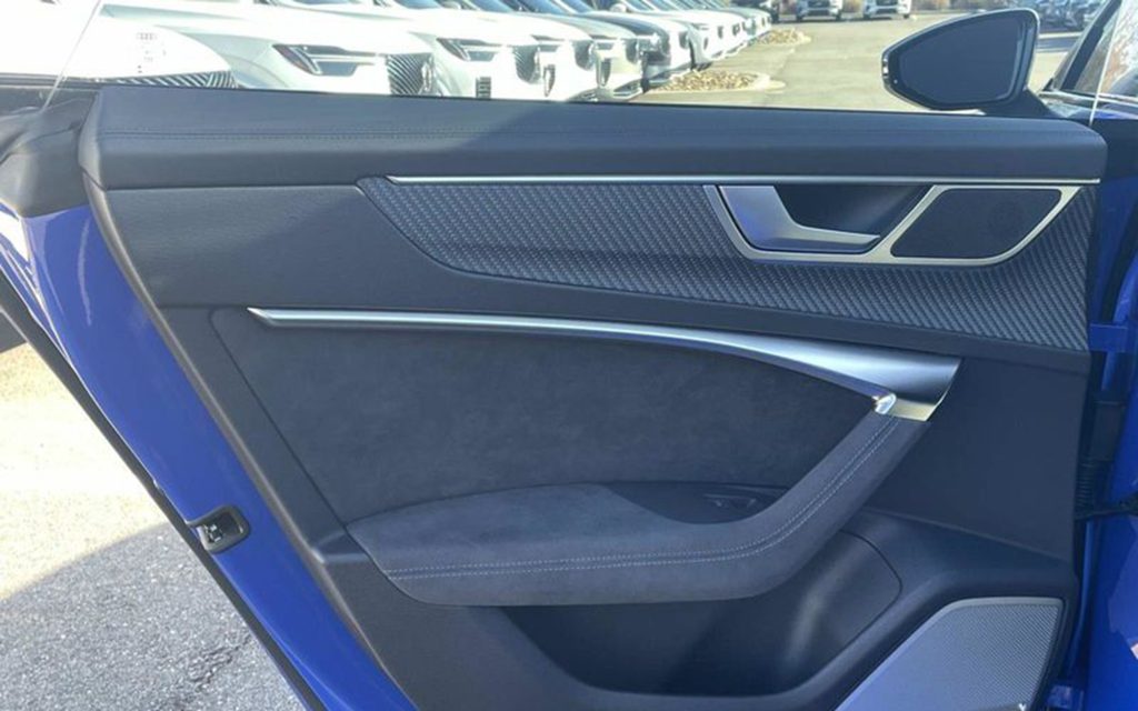 Where this example distinguishes itself is in the details. The Matte Carbon Package, matte carbon mirrors, and black exterior elements provide a stealthy counterpoint to the saturated blue paint, while inside, the RS Design Package in Blue ties everything together with blue contrast stitching, blue seat belts, and carbon twill inlays accented in blue. It’s cohesive without being loud—confident rather than flashy. Add Bang & Olufsen Advanced Sound, the Executive Package, and soft-close doors, and the RS 7 retains its role as a true luxury flagship even as it flexes its performance credentials.