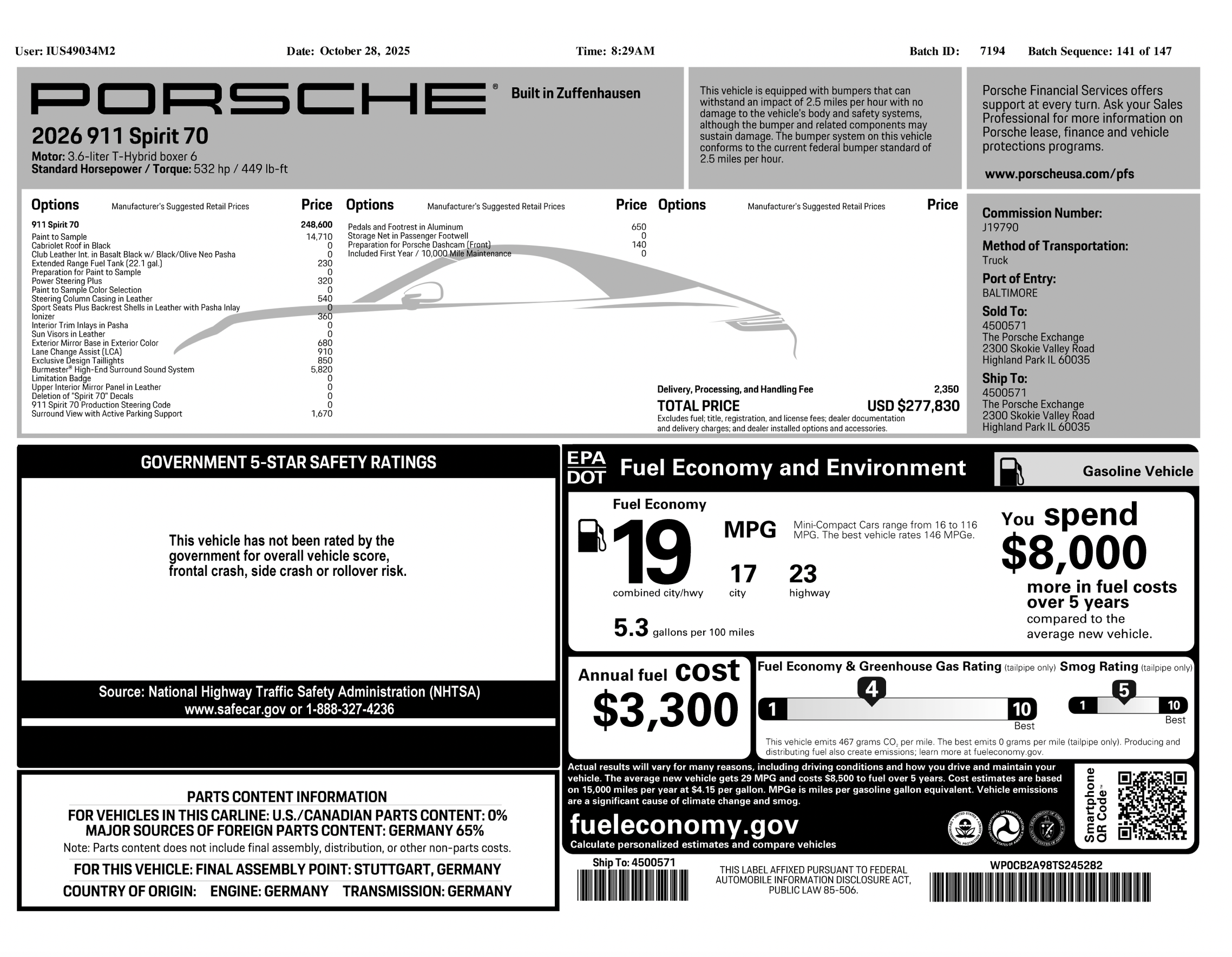 VIN: WP0CB2A98TS245282