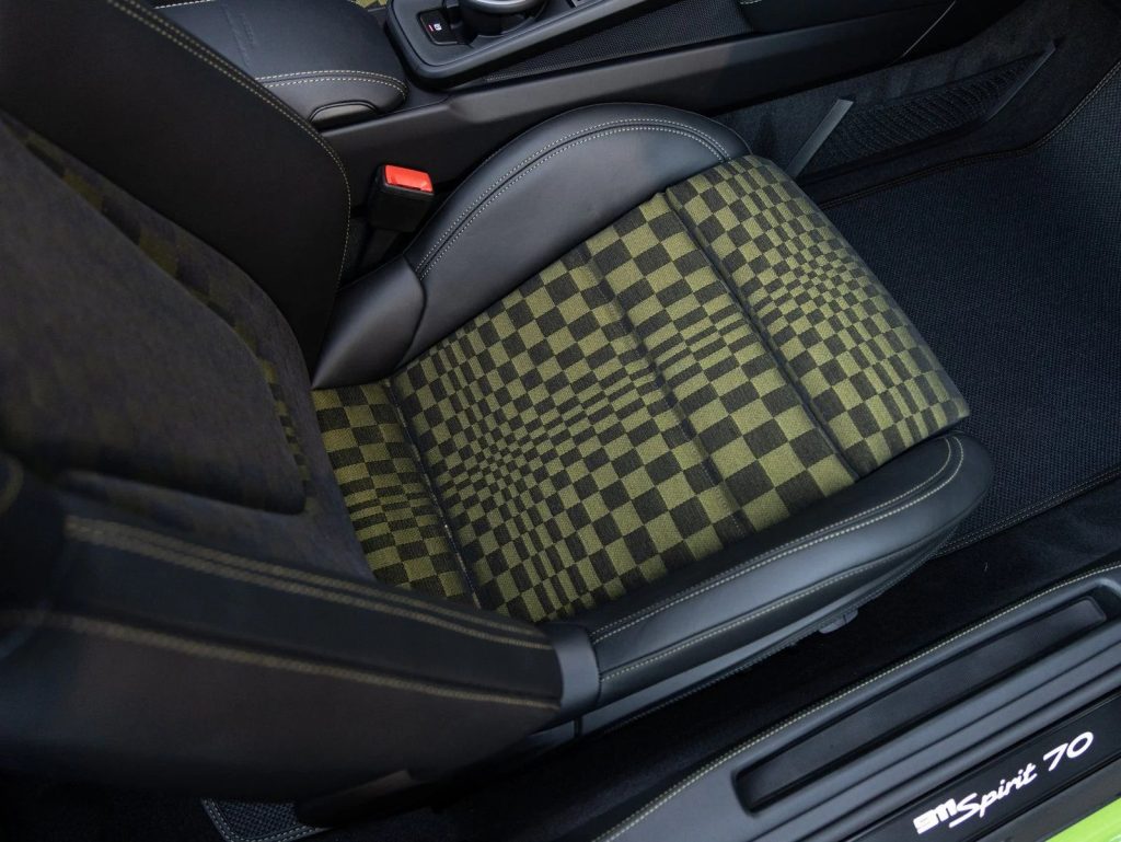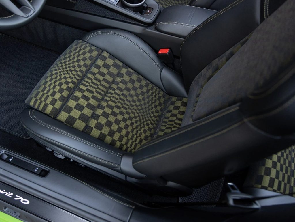 Willow Green is a historic Porsche color that originally gained prominence on the 914 in the early 1970s. While it is often classified as a medium pastel green, the shade is defined by subtle grey and brown undertones that provide a grounded, earthy note reminiscent of the willow tree’s foliage. On this limited production Spirit 70, the color pairs perfectly with the Basalt Black and Olive interior featuring legendary Pasha fabric inlays. The combination of a 1,500 unit global rarity and this specific mid-century paint code ensures this machine stands apart for those who appreciate the deeper archives of the Porsche Exclusive Manufaktur catalog.