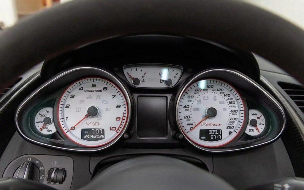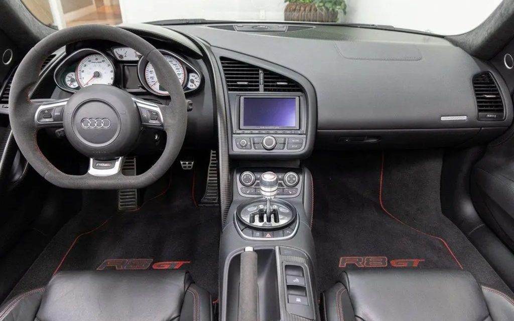 This R8 GT Spyder has respectably low miles and appears to be in great condition. Also worth noting, it does have one key modification. Every R8 GT of this era was fitted with Audi’s single clutch R tronic automatic transmission. As a result, many have been retrofitted to include the more sought-after gated manual shifter and this car appears to have had that procedure completed.