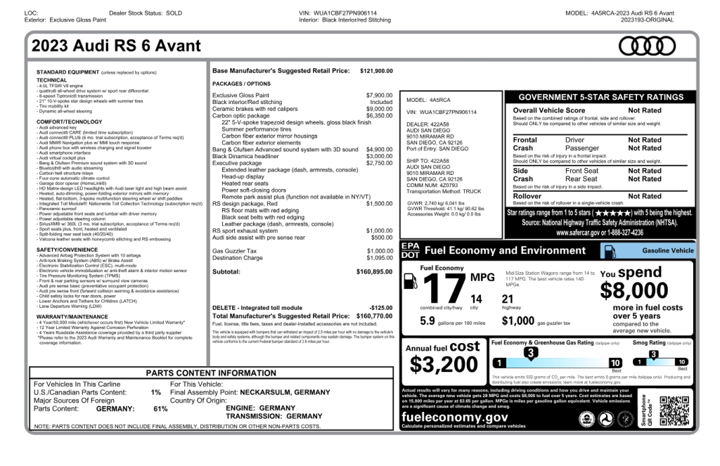 What: 2023 Audi RS 6 avant