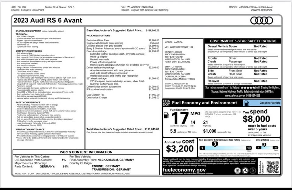 Audi exclusive paint options always elevate the desirability of an RS 6 Avant, and this 2023 example delivers with a deep, rare Goodwood Green finish over a Cognac interior. Showing 25,000 miles, the car remains stock and unmodified.