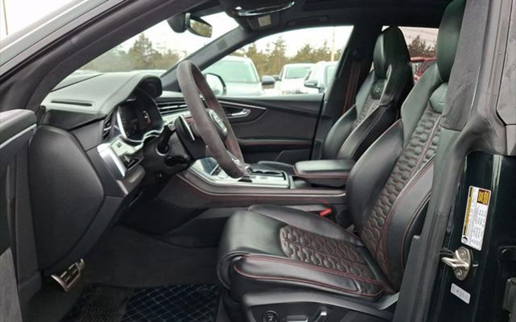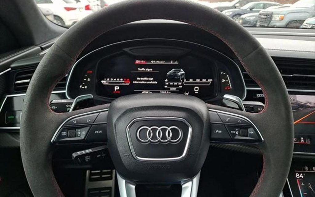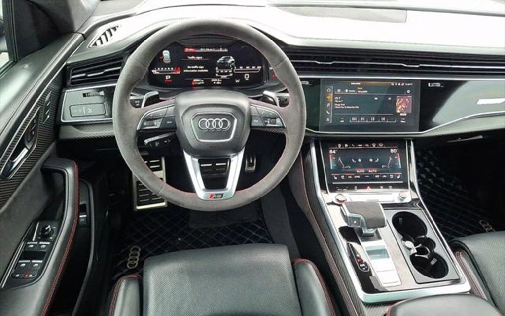 Under the hood sits Audi’s 4.0-liter twin-turbo V-8 with quattro all-wheel drive and an eight-speed automatic, pushing around 591 hp and 590 lb-ft of torque — the same propulsion that makes the RS Q8 one of the quickest SUVs on the planet, capable of sprinting toward 60 mph in the low 3-second range. That engine, paired with RS-tuned adaptive air suspension and dynamic all-wheel steering, results in an SUV that can hustle on a twisty road as convincingly as it cruises down the highway.