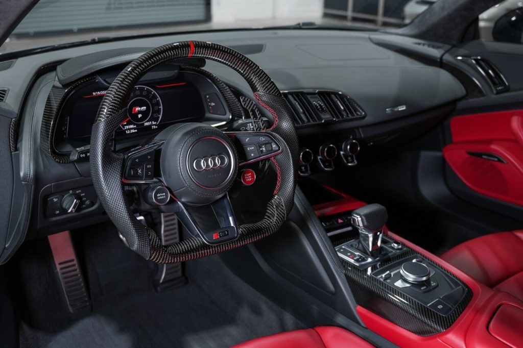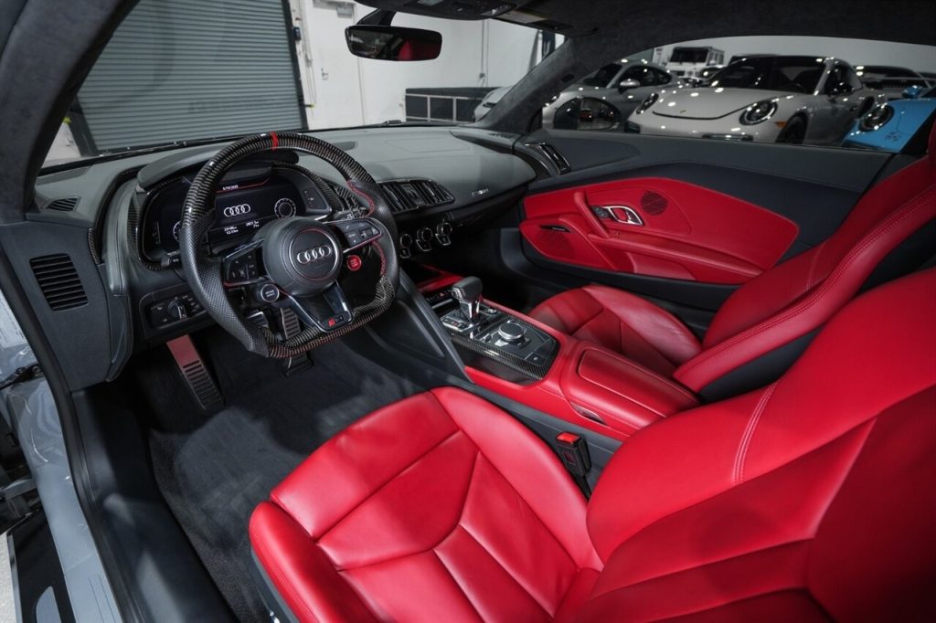 While Audi exclusive Nardo Grey is admittedly an obvious choice considering this Tailored Driver’s 2018 build date, the fact that this R8 is an RWS- meaning Rear Wheel Series (no quattro here)- and has two turbos bolted to it make this an exciting proposition. Further aided by a facelift front end retrofit and 20″ VT Forged wheels, we feel the next owner of this Nardo Grey Audi should have no issues standing out.