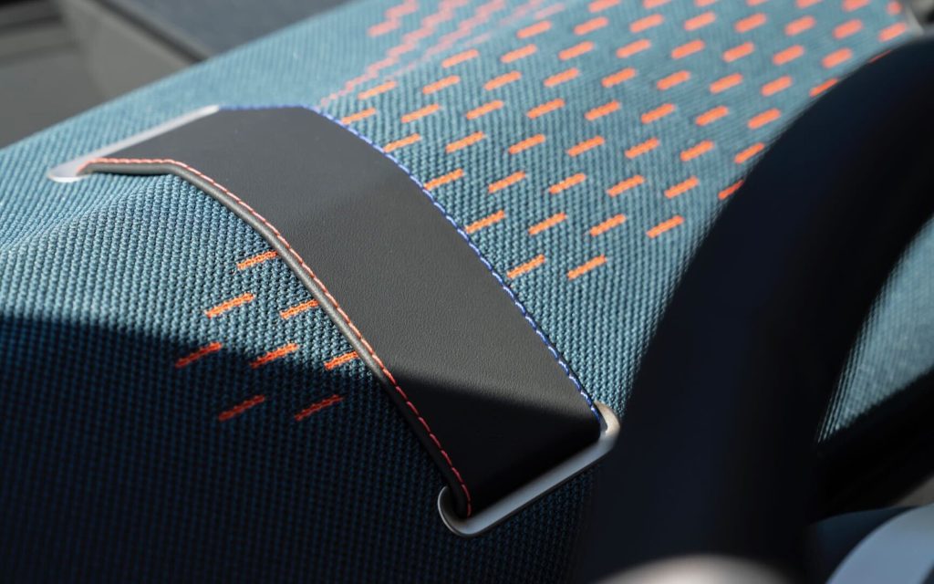 Beyond its sustainability benefits, the knitted textile was developed to meet both functional and design requirements. The surface features a layered construction that allows for two-tone color effects, with the lower textile layer subtly visible through the upper weave. This creates visual depth while maintaining a uniform and durable surface. The material is abrasion-resistant, structurally reinforced, and entirely leather-free, meeting durability standards expected for long-term automotive use.