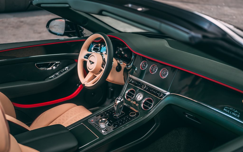 Inspired by Rembrandt’s 1642 masterpiece The Night Watch, the first commission is a Continental GT Convertible rendered in Midnight Emerald. Mulliner’s designers drew on the painting’s dramatic contrasts and character details: the Hotspur red accents echo the red sash worn by Captain Frans Banninck Cocq, while Magnolia hide references the coat of his lieutenant. A secondary Cumbrian green hide and Piano-finished fascia and waistrails complete the palette, punctuated with gold organ-stop ventilation pulls for a period-inspired touch of opulence.