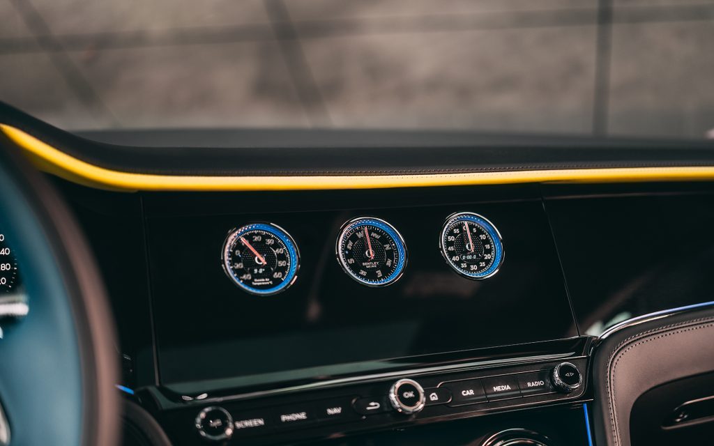 For the welcome animation and door cards, Mulliner selected the cloud formations from The Little Street (1658), translating Vermeer’s atmospheric brushwork into illuminated and etched surfaces. Piano Black fascia trim and bespoke Klein blue highlights on the Bentley Rotating Display complete one of Mulliner’s most delicately balanced specifications.
