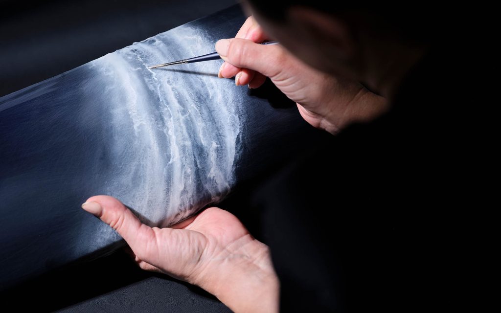 At the center of the concept is a focus on craftsmanship. Each vehicle features a hand-painted fascia designed to evoke the wake of a tender moving across open water, a process that required months of development to refine paint application techniques and achieve a sense of motion. The effect is paired with a Bespoke metallic blue finish dubbed Piano Milori Sparkle, intended to mirror the tones of the Mediterranean.